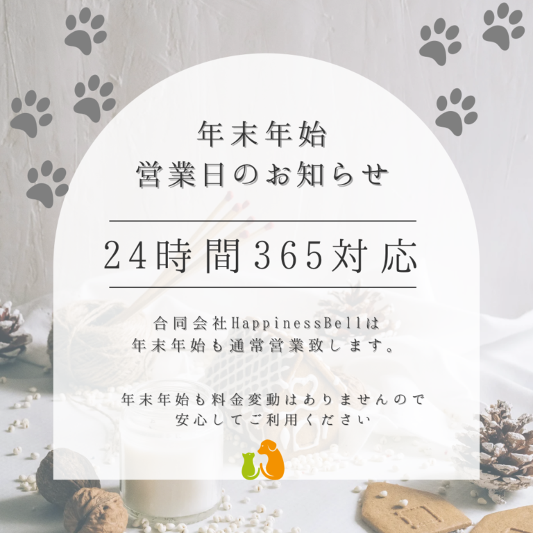 訪問ペット火葬ハピネスベルは、年末年始も休まず24時間体制でご家族様を支えます。「もしも」の時、いつ […] -